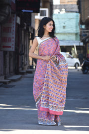 Gulabi Peher - A Blush of Timeless Elegance in Every Drape - Handblock Print Natural Dyed - Mulmul Cotton Saree